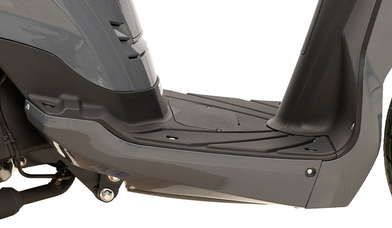 Το TREVIS 125 διαθέτει επίπεδο πάτωμα με αναδιπλούμενο γάντζο ανάρτησης για εύκολες μεταφορές, ανοιχτή θήκη στην εσωτερική πλευρά της ποδιάς για μικροαντικείμενα και διπλή θύρα USB Type-A και Type-C για φόρτιση συσκευών στην καθημερινή χρήση.