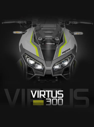 Ο δυναμικός σχεδιασμός του Virtus αντανακλά πλήρως τη φιλοσοφία κατασκευής του, με επιθετικές γραμμές που συμπληρώνονται από τους LED προβολείς, οι οποίοι ακολουθούν την πολυεπίπεδη αρχιτεκτονική της μπροστινής όψης του scooter και προσφέρουν μια φυσική και φωτεινή δέσμη. Στο πίσω μέρος, το εντυπωσιακό LED φωτιστικό σώμα ενισχύει τη μοντέρνα αισθητική του. Επιπλέον, το Virtus διαθέτει προεγκατάσταση για τοποθέτηση προβολέων ομίχλης.