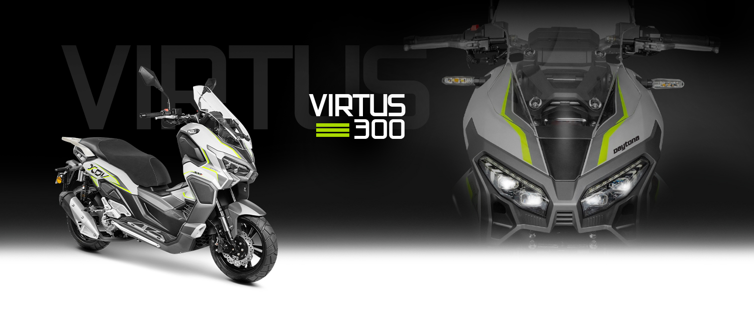Ο δυναμικός σχεδιασμός του Virtus αντανακλά πλήρως τη φιλοσοφία κατασκευής του, με επιθετικές γραμμές που συμπληρώνονται από τους LED προβολείς, οι οποίοι ακολουθούν την πολυεπίπεδη αρχιτεκτονική της μπροστινής όψης του scooter και προσφέρουν μια φυσική και φωτεινή δέσμη. Στο πίσω μέρος, το εντυπωσιακό LED φωτιστικό σώμα ενισχύει τη μοντέρνα αισθητική του. Επιπλέον, το Virtus διαθέτει προεγκατάσταση για τοποθέτηση προβολέων ομίχλης.