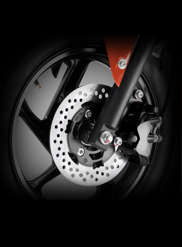 Ο δίσκος των 190mm με την δαγκάνα δύο εμβόλων μπροστά σε συνδυασμό με το ταμπούρο των 110mm πίσω, συνθέτουν ένα ασφαλές και αποτελεσματικό πακέτο φρένων.